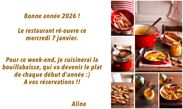 Liste des allergènes disponible sur place. N’hésitez pas à nous préciser votre contraintes alimentaires lors de votre réservation.